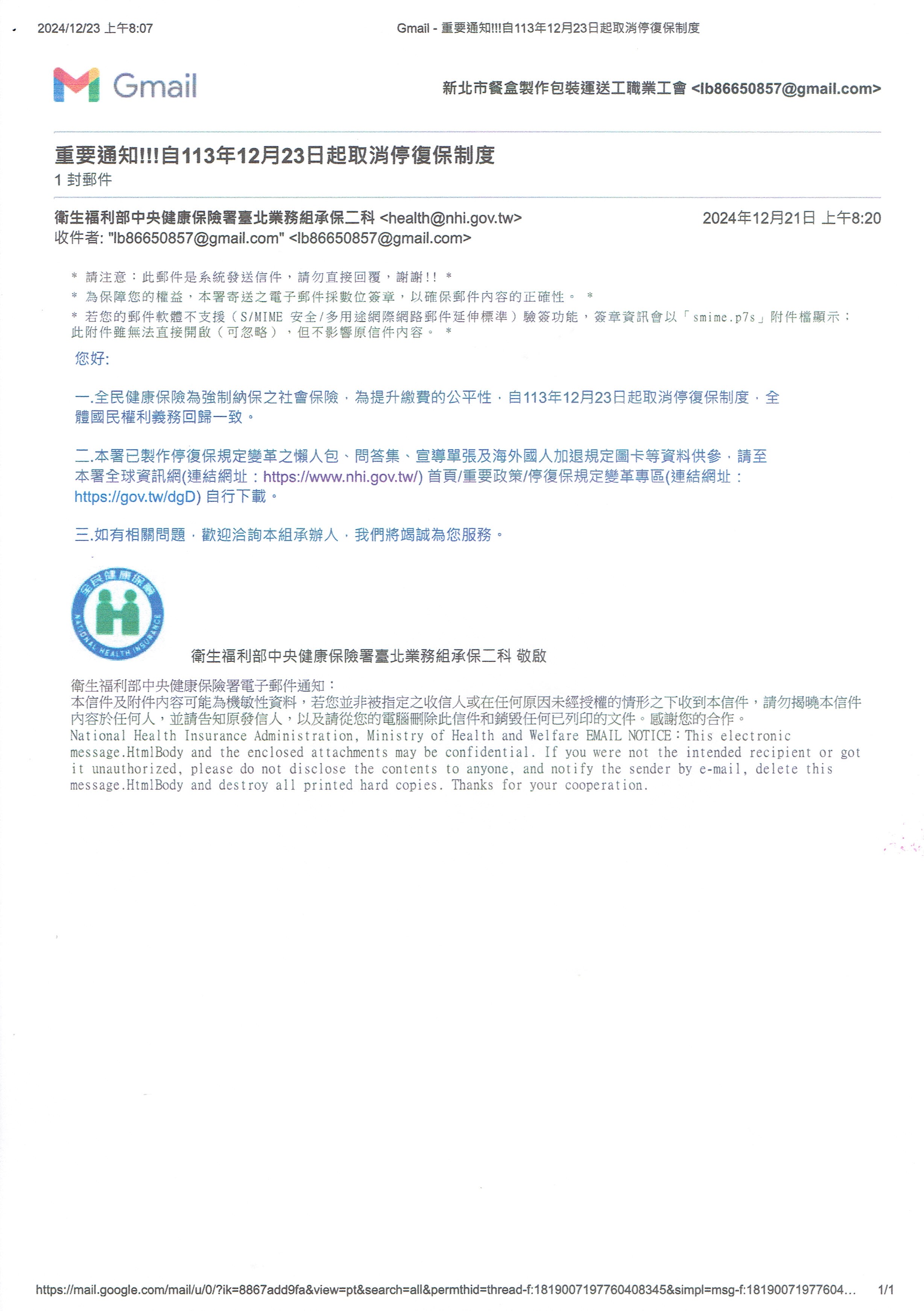 113年12月23日起健保停復保取消